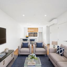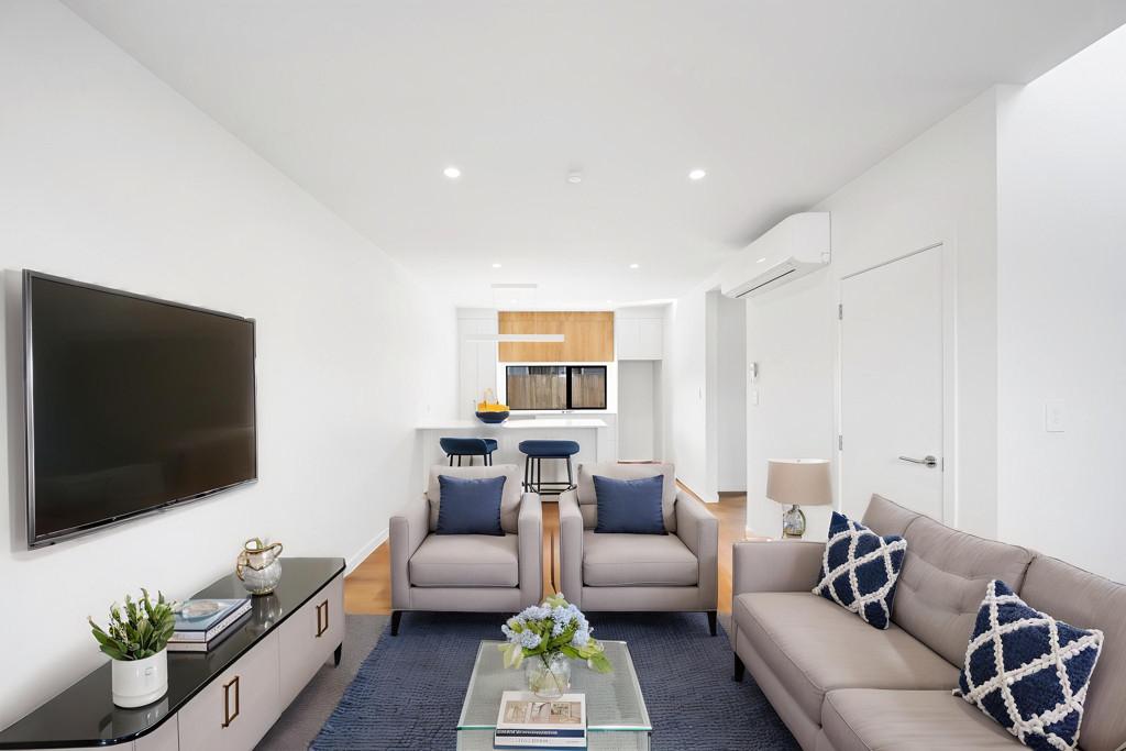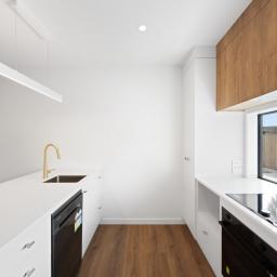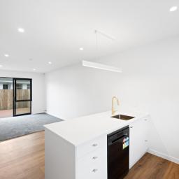 Each home showcases high-quality construction and contemporary interiors, with beautifully appointed fittings and finishes throughout. The open-plan living areas are designed with both comfort and functionality in mind, connecting seamlessly to Kwila decked patios for alfresco enjoyment. The carpeted internal access garages provide secure and convenient parking.