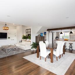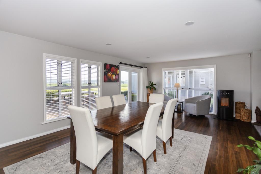 Effortless living is at the heart of this home's sleek and functional design. The spacious open-plan kitchen, complete with a central island, underfloor heating, modern Belling and Miele appliances, and a walk-in pantry, flows seamlessly into the dining and living areas. A cozy pellet fire ensures maximum comfort throughout.