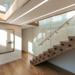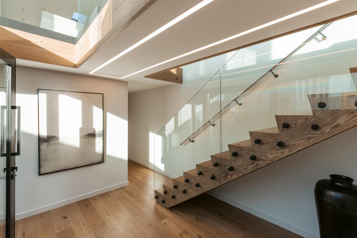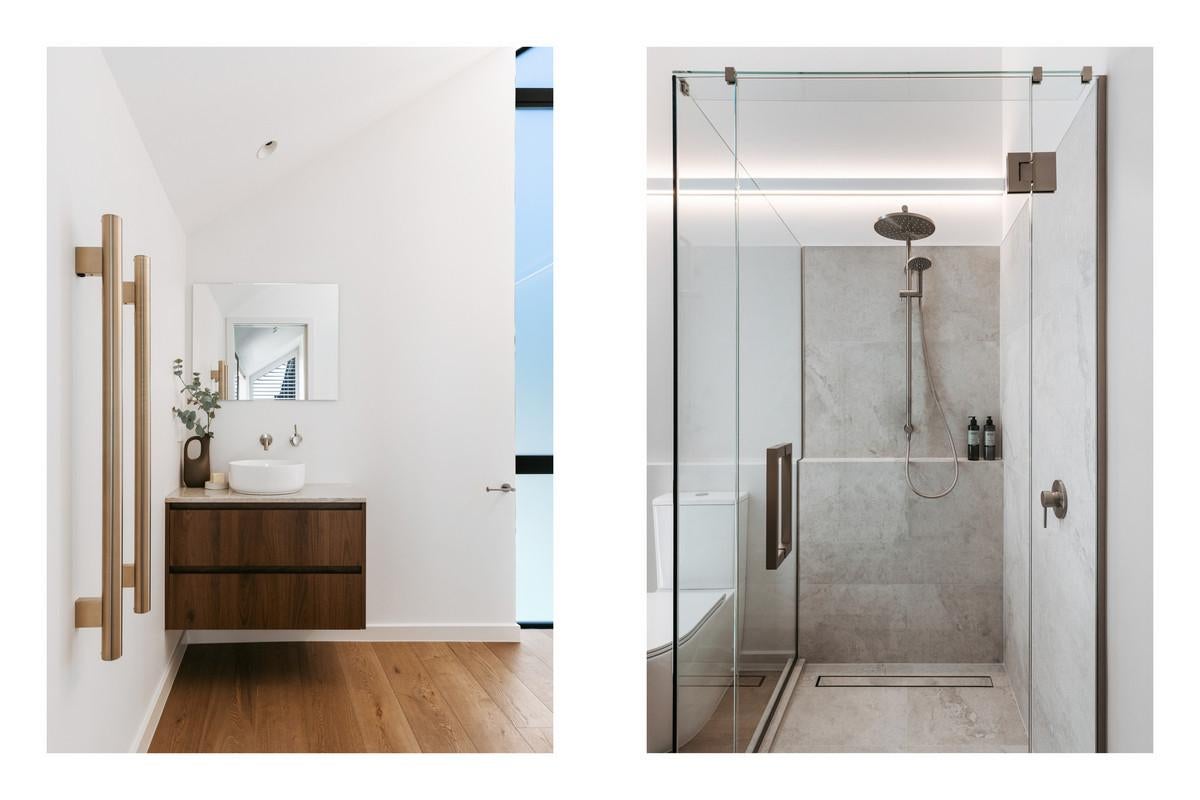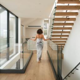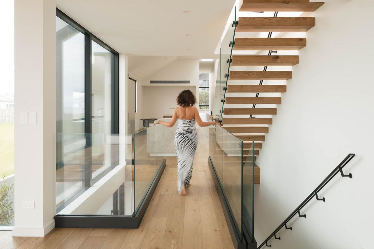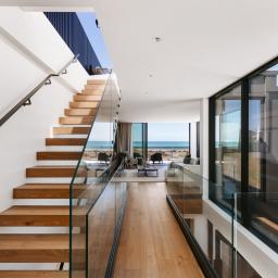 - The Entrance: Enter through a stunning floating door to a spectacular foyer with oak timber flooring and a timber and glass staircase.