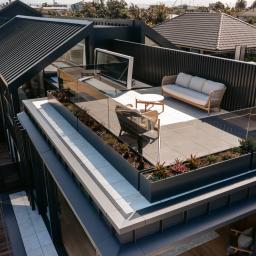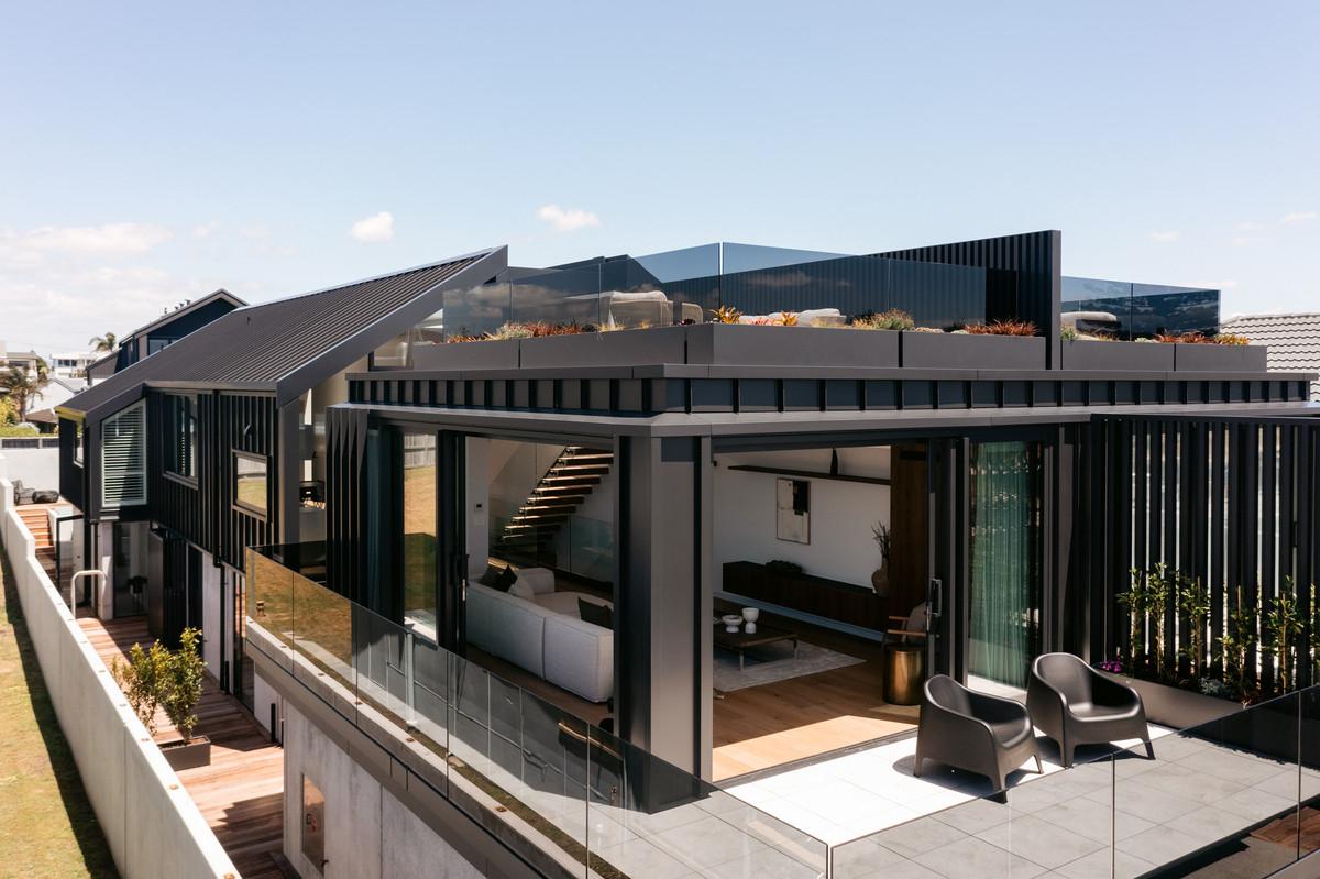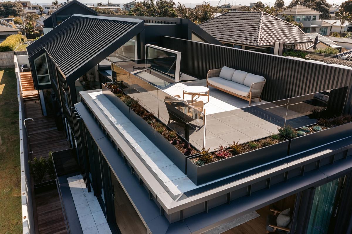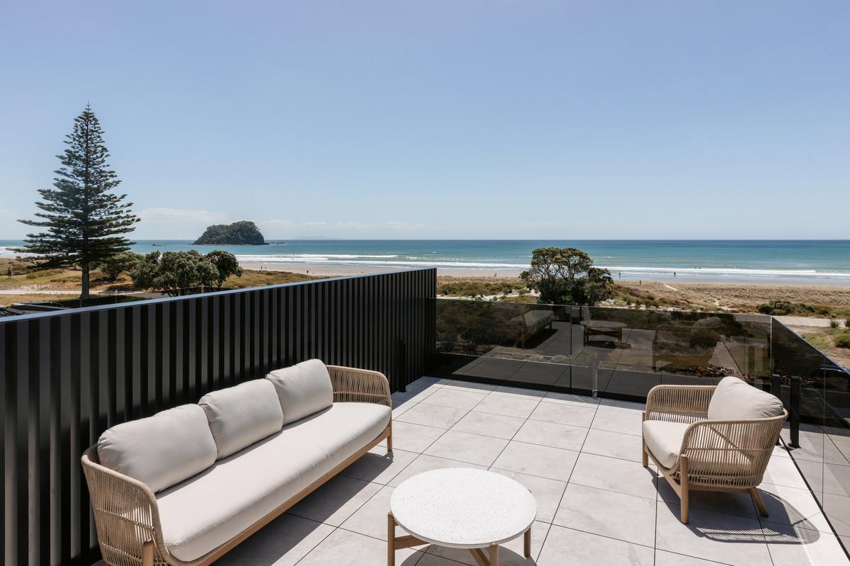 - The Rooftop Terrace: An elegant timber staircase leads you through a state of the art electronic roof hatch to a rooftop terrace with breathtaking 360 degree views of the ocean, Mauao and the hills beyond. From the terrace you can bask in both sunrises and