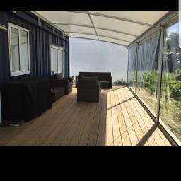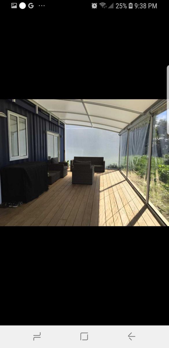 The Fresco canopy (including blinds and side panel) is stored onsite and included.
