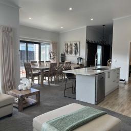 Step inside to a light-filled, open-plan living space that flows effortlessly between indoor and outdoor areas—an entertainer’s dream. Boasting four generously sized bedrooms, including a master with a large walk-in wardrobe and ensuite, this home offers comfort and space for the whole family. The main bathroom is stylish and functional, featuring a modern bathtub and shower, while a separate toilet adds extra convenience. A well-appointed laundry with direct access to the double garage ensures everyday practicality is seamlessly integrated into the home’s design.