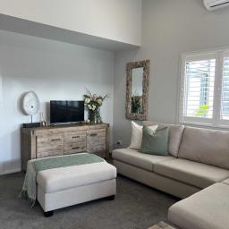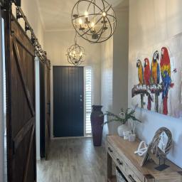 Every detail has been thoughtfully updated, from the barn doors and fresh curtains to new shutters, giving the entire home a fresh and contemporary feel.