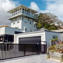 Originally built in the 1960s as a fire watchtower for the forestry service, this extraordinary structure was decommissioned, relocated, and in 2017 reimagined into one of Waitarere Beach’s most iconic homes. Set across three levels, this unique residence offers panoramic views stretching from the shores of Waitarere to the distant ranges. From its elevated position, enjoy breathtaking sunsets and a perspective unlike any other on the coast.