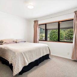 3 bedroom board and battern fully insulated 1980s home is of solid sound construction and has just had brand new underlay/carpet and laminated wood flooring , carpet in bedroom all have closets and their own individual spectacular views, 2 double bedrooms and 1 smaller bedroom (still comfortably fits a king size bed.
