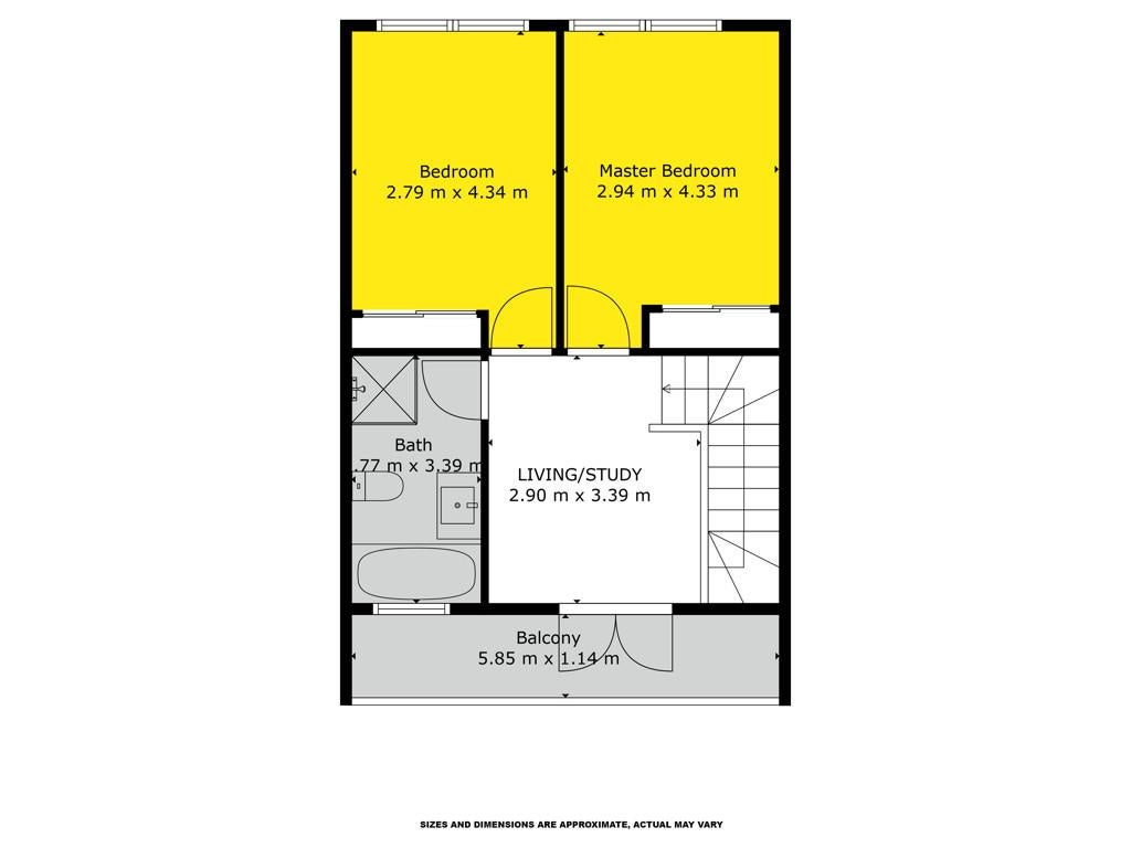 * Two generous bedrooms with upstairs landing space ideal for a study or extra living space with a sunny balcony for families, guests, or a work-from-home setup.