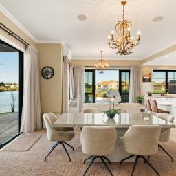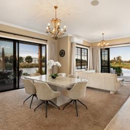 Set within beautifully landscaped grounds and protected by secure gates, this property offers an oasis of tranquility on the curve of picturesque waterways, basking in sunlight throughout the day. This impeccably designed home presents ample opportunities for both gathering and retreat, making it ideal for vibrant family living or an entertainer’s dream.