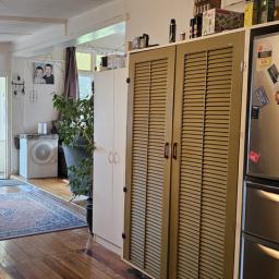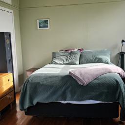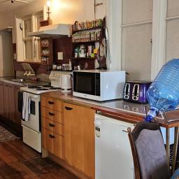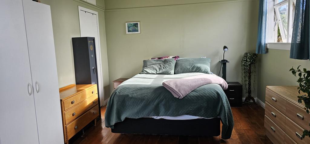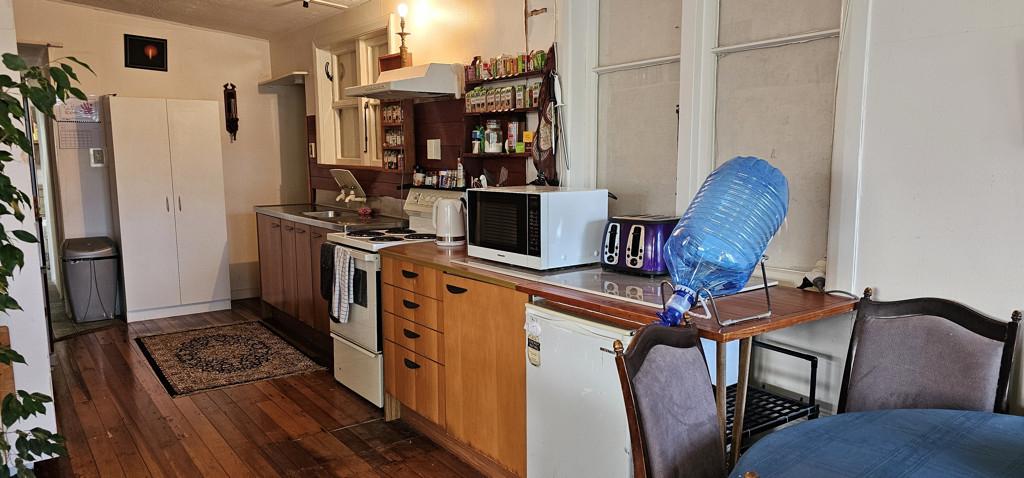 A large open plan living room gets all day sun, the kitchen is serviceable and of a good size and this space has lovely timber flooring. The master bedroom is spacious and has lovely high ceilings and there is a single bedroom.