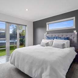 The generous master suite offers a peaceful retreat with walk-in-robe and tiled ensuite. Three further bedrooms and a stylish family bathroom with separate toilet ensure space and convenience for everyone. Comfort is guaranteed year-round with a heat pump and HRV system keeping the home warm, dry and inviting.