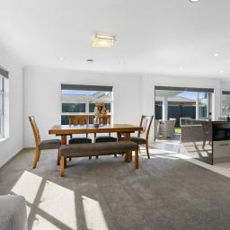 Step inside and discover a thoughtfully designed 240sqm (approx.) home. At its heart is the sleek chef's kitchen, complete with Fisher & Paykel gas stove and stone benchtops, flowing effortlessly to the open plan dining and two living areas. From here, sliding doors open to the covered portico - the ultimate spot for summer BBQs and relaxed evenings while the kids play on the spacious lawn.