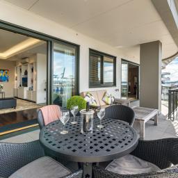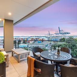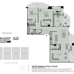 The prominent position lends itself to quality, design and elegance with the Waitemata as its natural backdrop. A generous 233 square metres, with 3 large terraces (51m2 approx.) occupies a north west aspect. Its opulent interior, solid American oak flooring, marble and stone mean every aspect of this residence exudes timelessness. Consisting of 2 large bedrooms, study (easily converted to a 3rd bedroom), 2 bathrooms, an entertainer's kitchen with a scullery, formal lounge and open floor plan offers versatility and practicality. With 4 car parks, 2 walk-in internal storage rooms and a locker makes your transition to an apartment easy. The elevation and orientation giving an abundance of natural light throughout the day, creating a warm and inviting ambiance within. As one of only a handful of Parnell waterfront penthouses, this residence offers a level of privacy and exclusivity rarely found in urban living. The complex has recently undergone a significant upgrade, including double glazing and landscaping, enabling residents to enjoy peace of mind knowing that their apartment is not only luxurious but meticulously maintained befitting the architectural legacy of before.