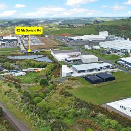 It is a short drive to the village centre with the entry to the freeway south at the end of, McDonald Road being located in the centre of the modern growing gateway industrial park, on a prime site of 2184 sqm, having a rateable value of $4,680,000 with two stand-alone buildings on a fully landscaped site, built in 2019 by Cherrywood Homes Ltd and designed by Qual design, building one is 162.5 sqm with a covered patio of 74sqm and a roof extension of 44sqm having full council compliance and recently resource consented to operate as a licensed bar and restaurant (a rarity within an industrial zoning but adds real value with the tenancy) taken up by the highly acclaimed "India Bar and Restaurant " with identified car parks.