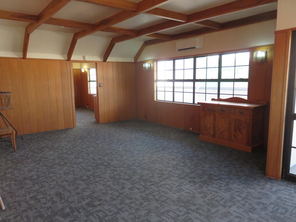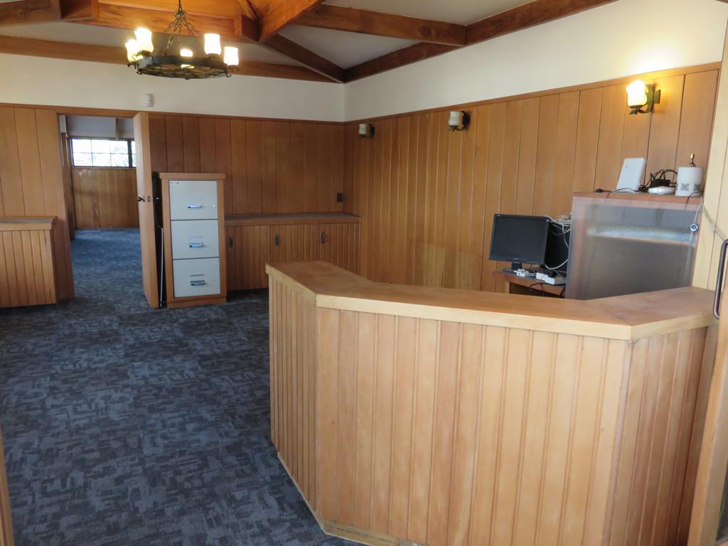 Option 2 - Reception area with built in desk and cabinets, heat pump plus another separate office with a kitchenette and heat pump, total space approx. 70m2. There is also access to the outdoor balcony area with views on the main street and Northern Wairoa River. Lease is $16,000 + GST and outgoings.