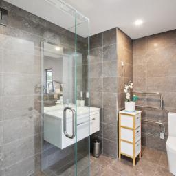 • Stylish bathroom with floor-to-ceiling tiles and underfloor heating
