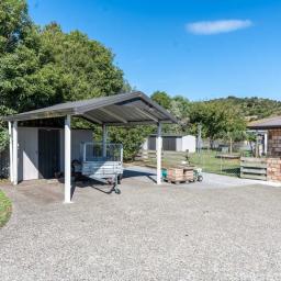 Double garage, carport, powered portacom (hobby room, office or sleepout) & 3 sheds