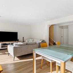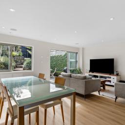 Meticulously updated with state-of-the-art lighting, security, and sound systems, the home blends intelligent design with warm, effortless living. On the mid-level, a brand-new kitchen flows into a sun-filled lounge and out to a lush north-facing garden, cleverly landscaped to offer both privacy and light. It's a space that adapts as easily to entertaining as it does to unwinding.