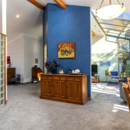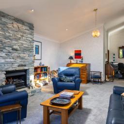 Inside, you are greeted by grand raked ceilings, exposed timber details and a schist fireplace - instantly feeling like home and bursting with personality. The north-facing conservatory bathes the dining area in sunlight, making it an excellent spot for breakfast with a view or a quiet afternoon read.