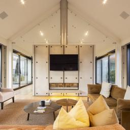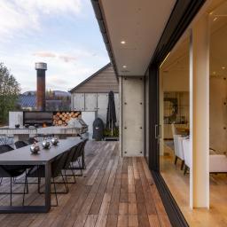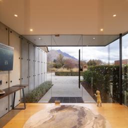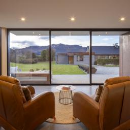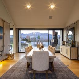 Open the floor to ceiling sliding glass doors on both sides of the home to spill out to interconnected entertaining decks where you can snuggle up on cooler evenings by the substantial open fire to enjoy watching night skiing on Coronet Peak or, in Summer indulge in a long lunch cooked on the bespoke built-in barbecue.