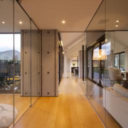 Boasting deliciously modern construction with sensual soft concrete walls, cathedral ceilings, exposed beams and floor to ceiling glazing the home is filled with light and oriented to capture unique uninterrupted views of both the Coronet ski field and The Remarkables.