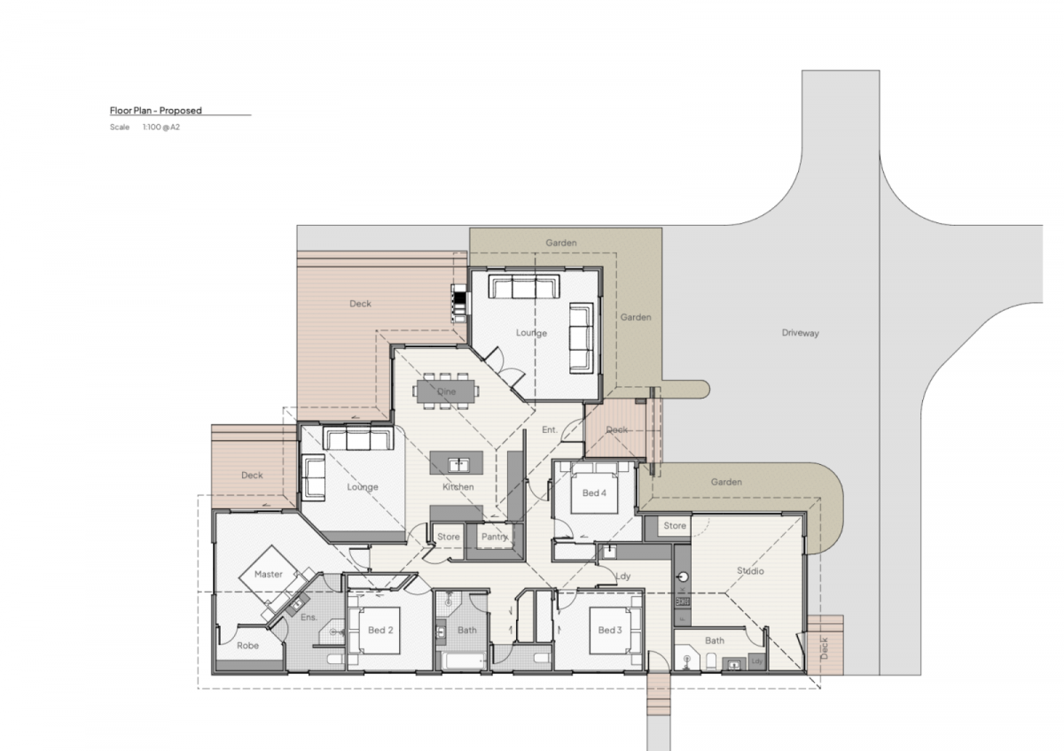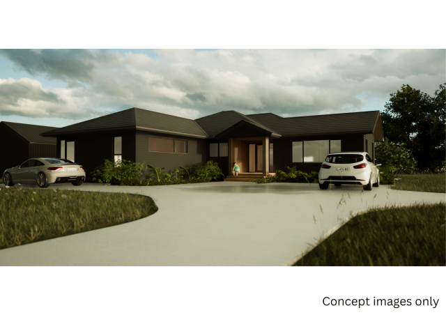 This former showhome is being relocated and upgraded with a brand-new exterior and landscaped north-facing outdoor living. Designed with flexibility in mind, it offers the perfect setup for home and income, featuring a total floor area of 224sqm.