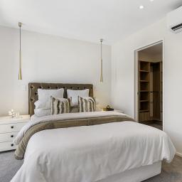 Top floor: Two generous bedrooms, each with its own ensuite. The primary suite includes a walk-in wardrobe and a calm, contemporary feel that makes it a true retreat.