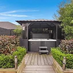 The master has a well appointed ensuite and walk in robe and access to a private sunny courtyard leading out to the covered spa area.