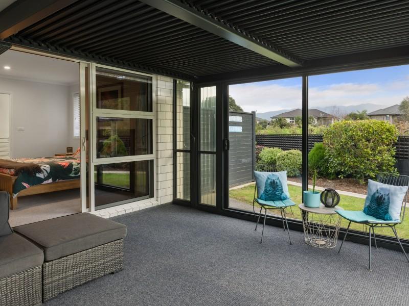 Nestles on the outskirts of Katikati and backing onto Council Reserve, this 2020-built home captures stunning views of lush greenery and the Kaimai Ranges - the perfect blend of privacy and peaceful outlook.