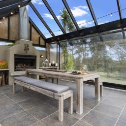 Outside, the expansive back Kwila deck overlooks a lush backyard where you can enjoy the evenings by taking a spa or relaxing in the glass-covered pavilion with a featured fireplace, offering a cozy haven regardless of the season. Storage spaces galore, with an internal access double garage, an additional workshop plus more sheds at the back. A separate gate off of the driveway provides access to a hardstand yard with an open bay shed, perfect for storing a boat, tractor, or more!