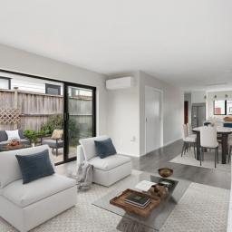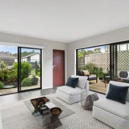 Tucked away in a quiet, gated enclave, 2E Vinistra Road in Kumeu offers the ideal lock-up-and-leave lifestyle for those wanting comfort, convenience, and style without compromise. This sunny two-bedroom townhouse makes the most of its north-facing aspect, bathing the living spaces in natural light from morning through to evening.