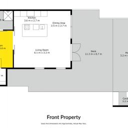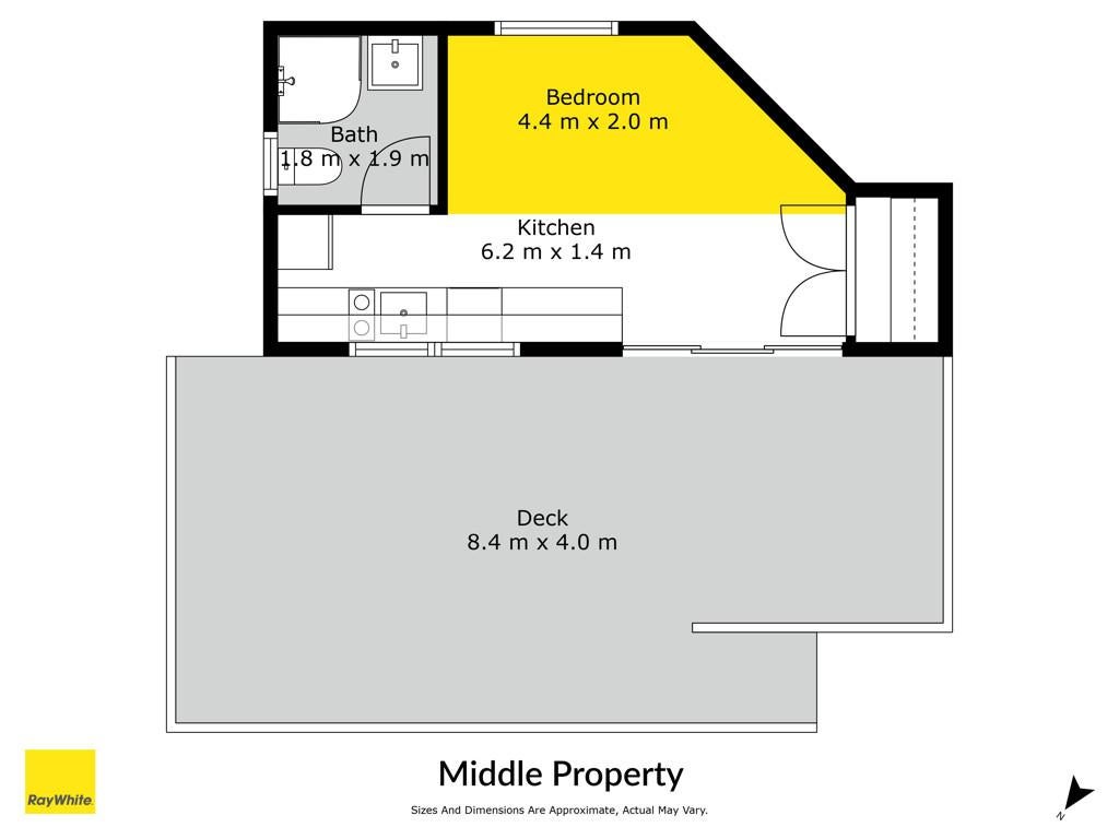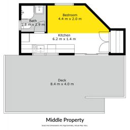 At the front, a charming weatherboard home features one bedroom, one bathroom, and a spacious open-plan kitchen, living, and dining area that opens onto a large, sun-drenched deck - perfect for relaxed coastal living.