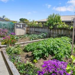 Outside, a productive vegetable garden, garden shed, and shade house provide everything you need to grow your own produce and enjoy the outdoors.