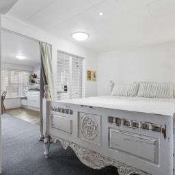Zone 1 : Is currently set up as a split room consisting of a lovely bed space with walk in robe, an open plan kitchenette area which houses the washing machine sink and living space, plus a separate bathroom and storage room.