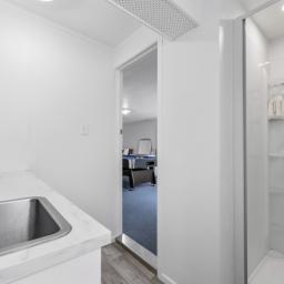 Zone 2: A sleek studio with its own bathroom/laundry.