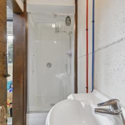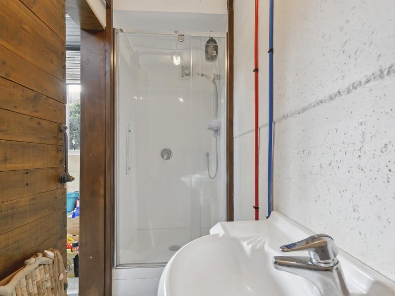 Comes with a full bathroom, shower, vanity and WCC with Renai heated water using central gas. Mezzanine shelves give lots of storage and space. Workbench with a hand basin that can be used as a kitchenette.