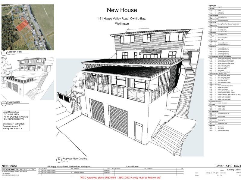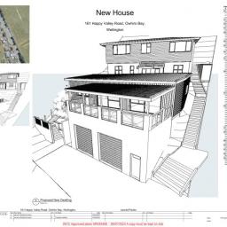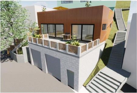 Has building and Engineering plans for a 2-bedroom home to be built on top of the garage.