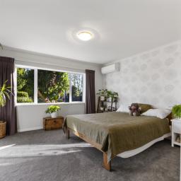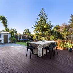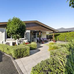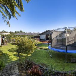 Out back, a fully fenced, vibrant garden oasis awaits. Enjoy colourful plantings, ponga trees, a sheltered patio, and ample space for kids and pets to roam. There's even a tucked-away garden zone ideal for quiet reflection or cultivating your green thumb.