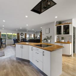 The standout Rimu kitchen is a true centrepiece - rich in character and fitted with sleek, modern appliances and high-spec finishes. From here, step out to the sun-soaked deck with built-in seating - perfect for long summer evenings and weekend barbecues.