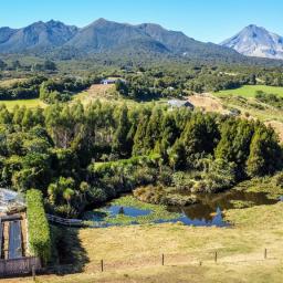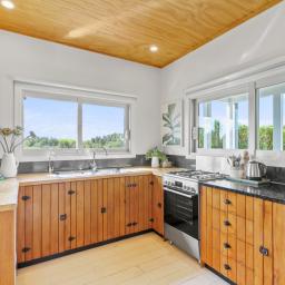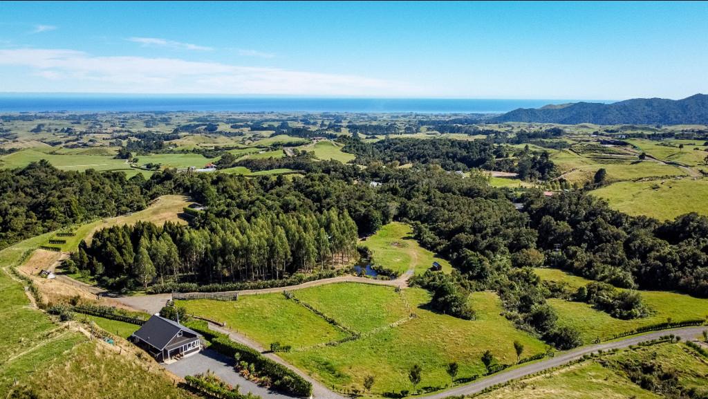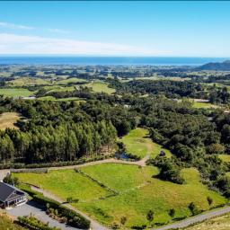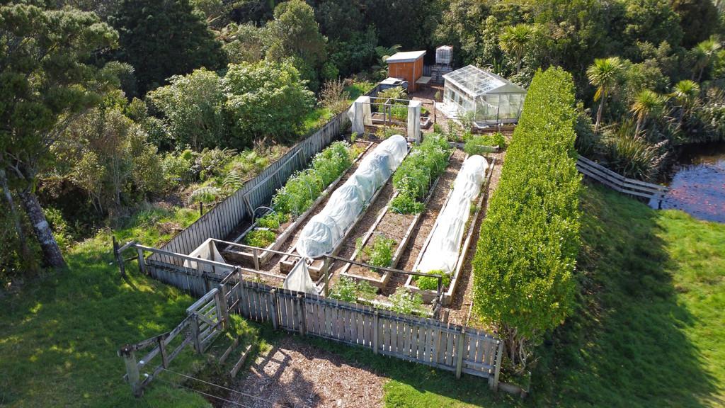 Beyond the home, the land presents a harmonious mix of open grazing and breathtaking native bush (with bush walks), delivering both beauty and productivity. A maturing orchard flourishes with a wide variety of fruit and citrus trees, complemented by vegetable gardens, raised beds, and a greenhouse. A freshwater stream, well-fenced paddocks, and dual chicken coops further enhance the property's self-sufficient appeal.