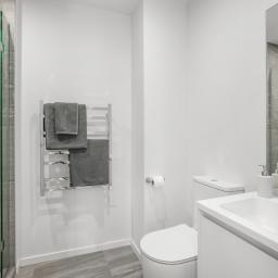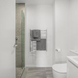 - Stylish bathrooms equipped with tiled showers, wall-hung vanities, and modern fittings