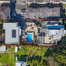 You are buying a large 2,482 m2 site in downtown Paihia, home to an impressive complex comprising two architecturally designed, substantially constructed, north facing, sunny buildings totaling 1800 m2 of living accommodation, connected by a swimming and spa pool deck.