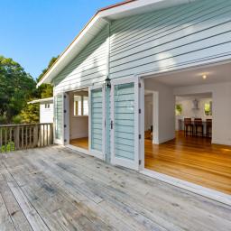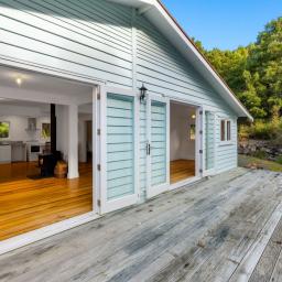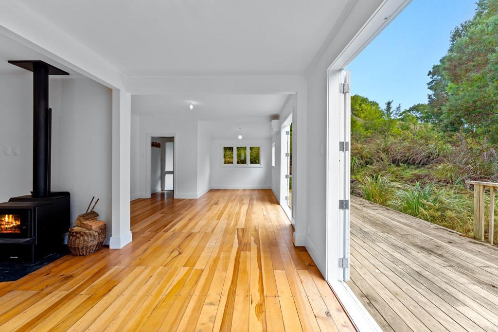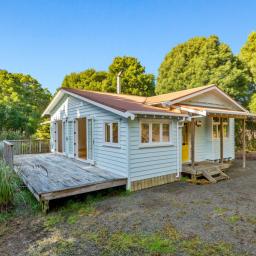 Wind your way down the bush lined driveway to this spacious 140m2 bungalow full of character, a covered entrance with a stained glass front door welcomes you. Polished matai floors flow through the expansive open plan kitchen, dining, and living area. French doors open to the deck overlooking the bush with a glimpse of the Otamatea River peeking through the trees.