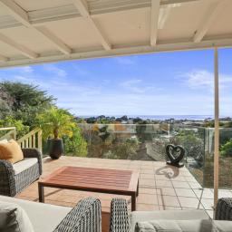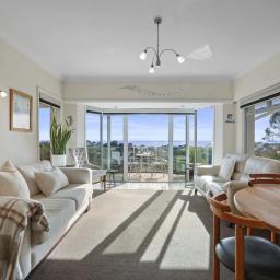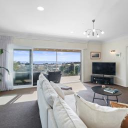 The main (street) level features a welcoming entrance leading you through to a modern kitchen, fabulous open plan sun-drenched, north-facing dining and living areas, celebrating this spectacular outlook. A light-filled conservatory adjoins the lounge and is a peaceful retreat and can comfortably accommodate overflow from gatherings. Step outside to enjoy superb outdoor living and entertaining, all framed by breathtaking sea and city vistas. Two spacious bedrooms including a very large master with sea views and two well-appointed bathrooms. Downstairs, you'll find a large rumpus room - ideal for teens, guests, or as additional living - two further spacious bedrooms and bathroom, explore Airbnb options here. Separate laundry, and a large utility room, has so many uses. Positioned on 683sqm with terraced gardens, which are largely protected from our prevailing winds, is both beautiful and peaceful. Our vendor has loved living here for 16 years plus and say, 'The location is so convenient and is an easy walk to anywhere really". CBD, foreshore, cafes, schools and Sanders Park nearby.