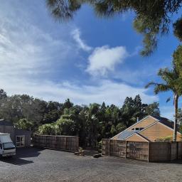 At the heart of the home is an open-plan living and dining area, two lounge areas, and a wood burner that efficiently heats the upper floor. decks extend from the ground floor, providing captivating views over the lush bush and a glimpse of the adjacent paddocks. A large, private front courtyard is also available for entertaining. An additional benefit is the roller-doored carport, offering secure covered parking for a single vehicle and convenient covered access to the house via the connecting door.