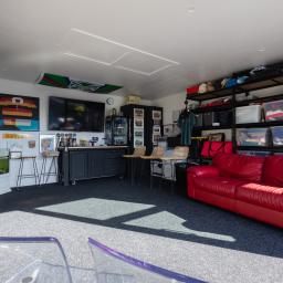 At the rear of the property, you’ll find a highly versatile space featuring a garage that has been thoughtfully designed to serve multiple functions. This area can effortlessly transform into a stylish lounge, creating an inviting atmosphere perfect for guest entertainment. Alternatively, it offers flexible potential for a range of additional business uses, whether as extra storage, a workshop, or a unique communal space to enhance the property’s overall appeal and functionality.