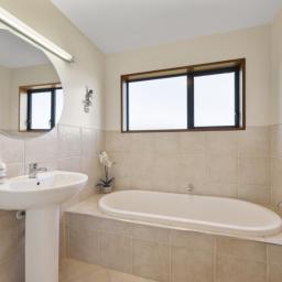 The home offers three well-proportioned bedrooms, with the master privately positioned and complemented by its own walk-in wardrobe and ensuite. All bedrooms feature sliding doors that open to the outdoors, seamlessly connecting indoor spaces with the surrounding landscape. A central bathroom with both bath and shower, along with a separate toilet, provides practicality for families and guests.