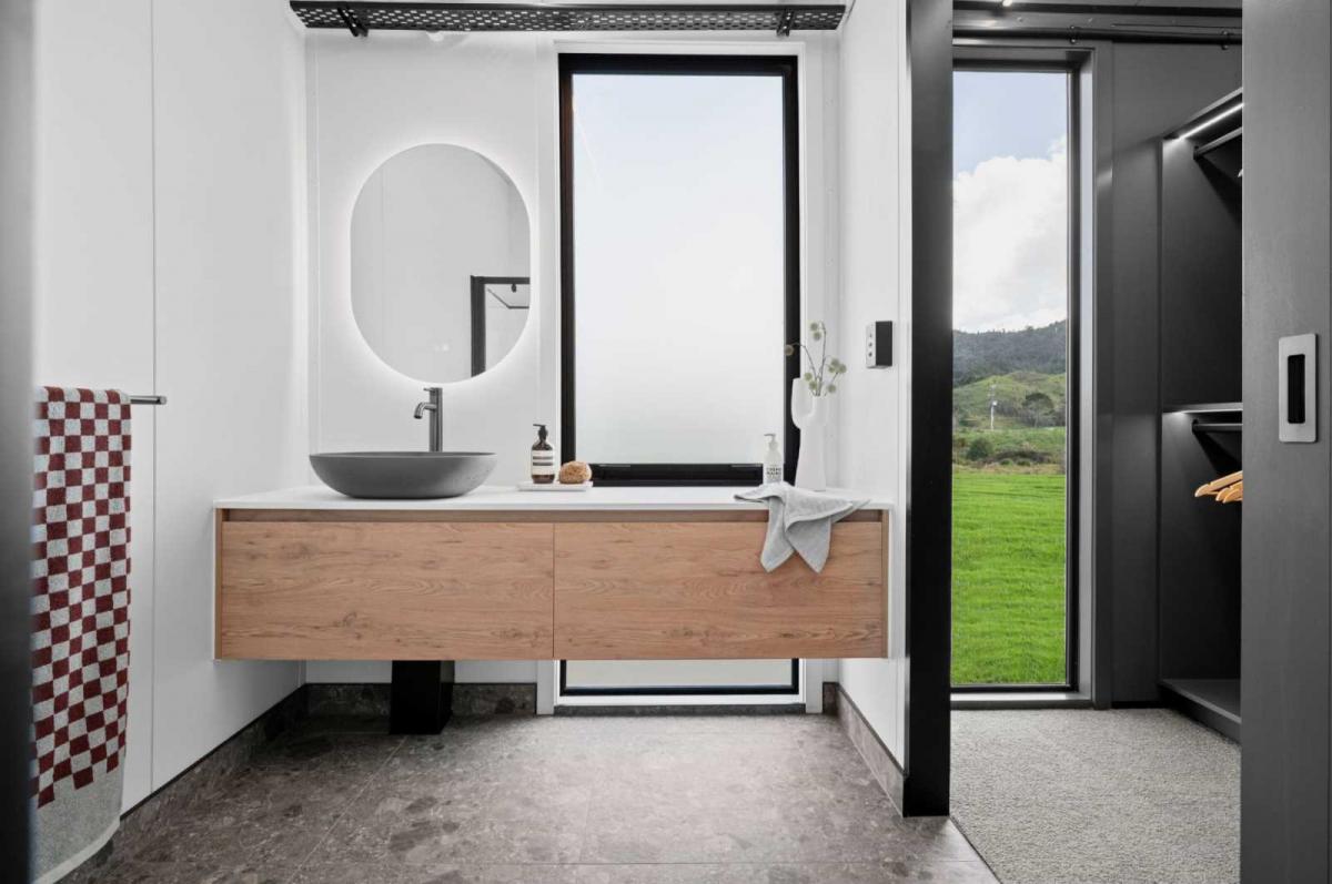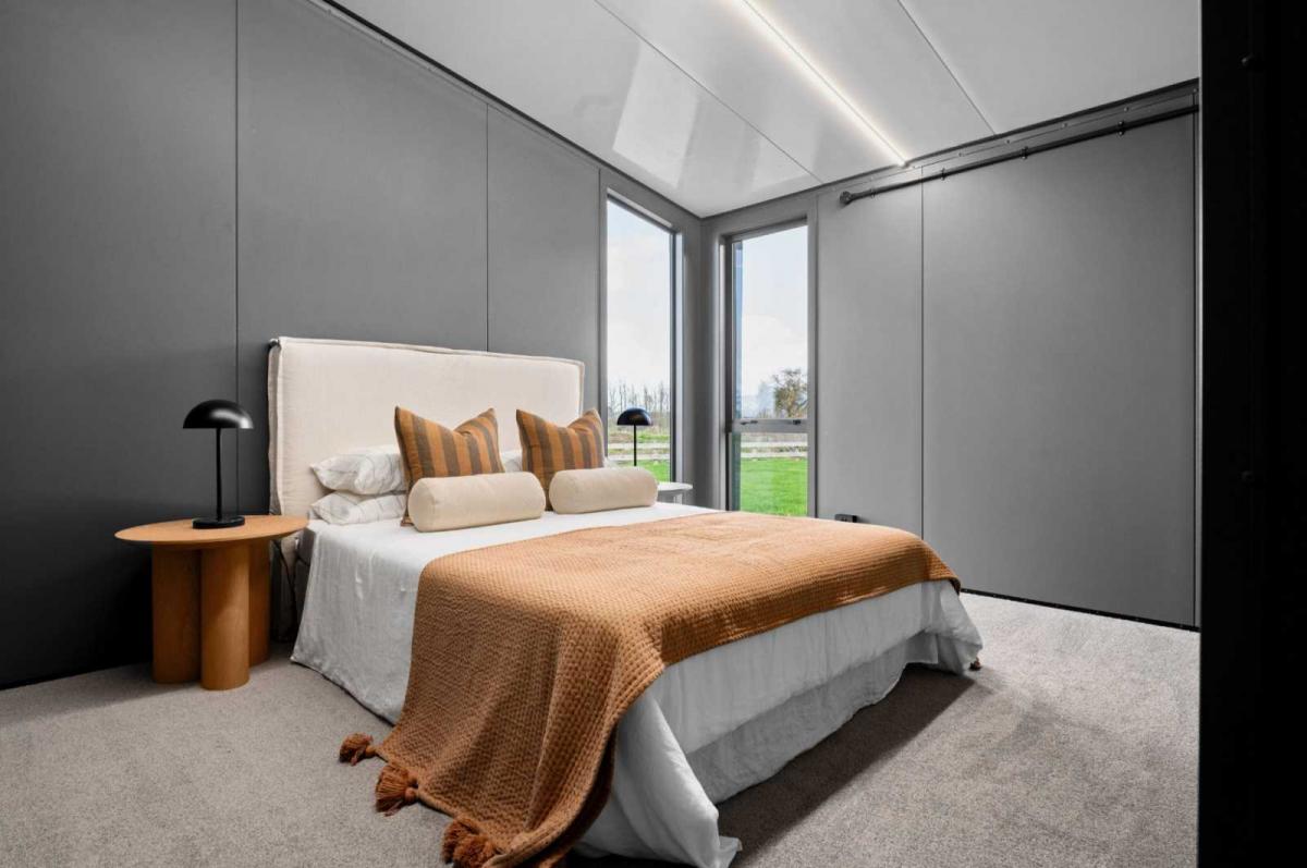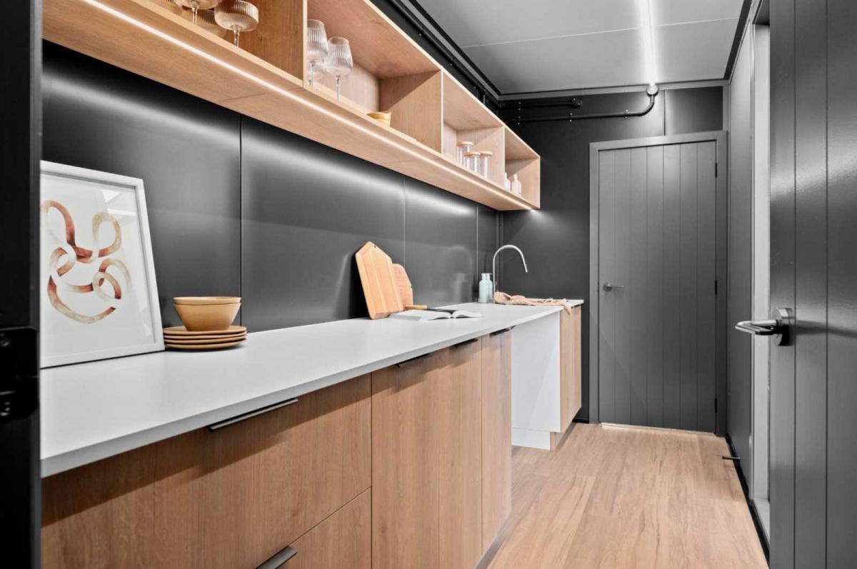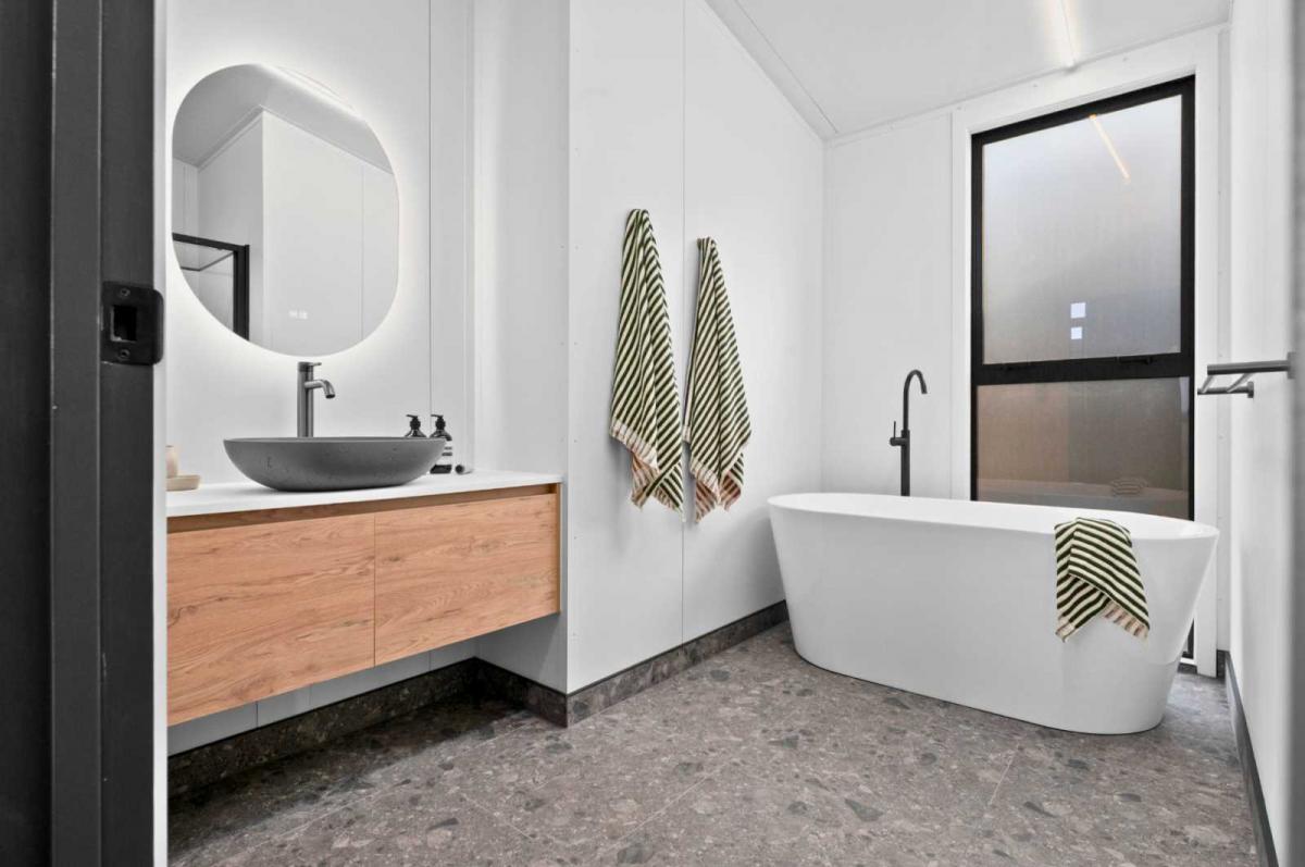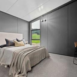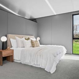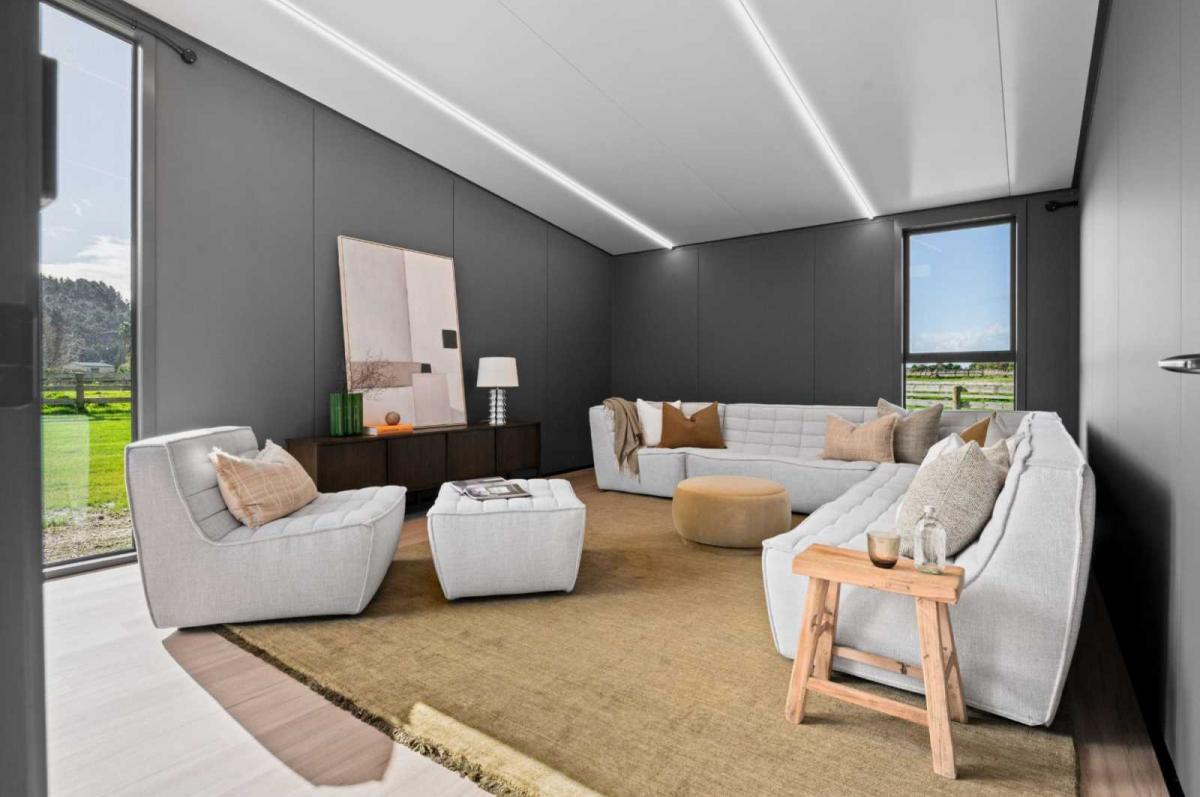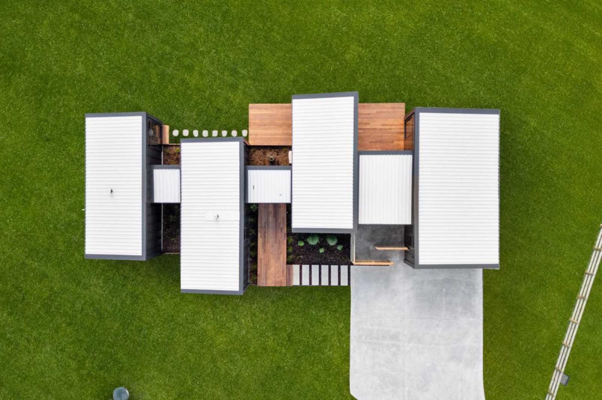While the design speaks for itself, this home is also built for performance. Constructed from SIP panels, wrapped in premium NZ-made COLOURsteel, it’s warmer in winter, cooler in summer, and more energy-efficient than traditional builds. Striking architectural fins, low-maintenance landscaping, and layered textures create a powerful visual identity—one that’s as practical as it is beautiful.