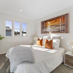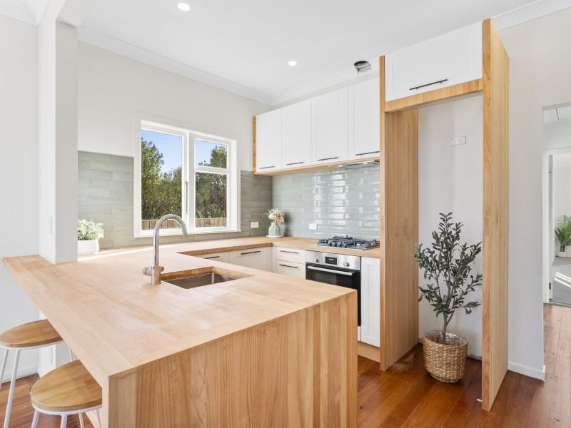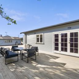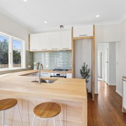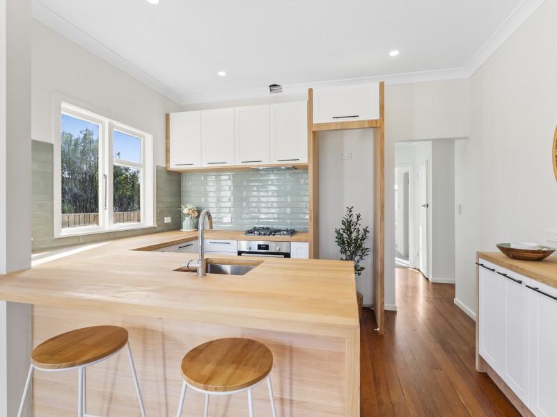 The sleek modern kitchen is a standout, complete with timber-look benchtops, a gas hob, quality fittings, and plenty of storage making it a great spot for morning coffees or weeknight catch-ups. French doors open from both the living area and the master bedroom onto an expansive west-facing deck, making entertaining a breeze and providing the perfect place to enjoy late-day sun or relaxed weekends outdoors.