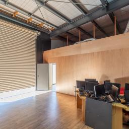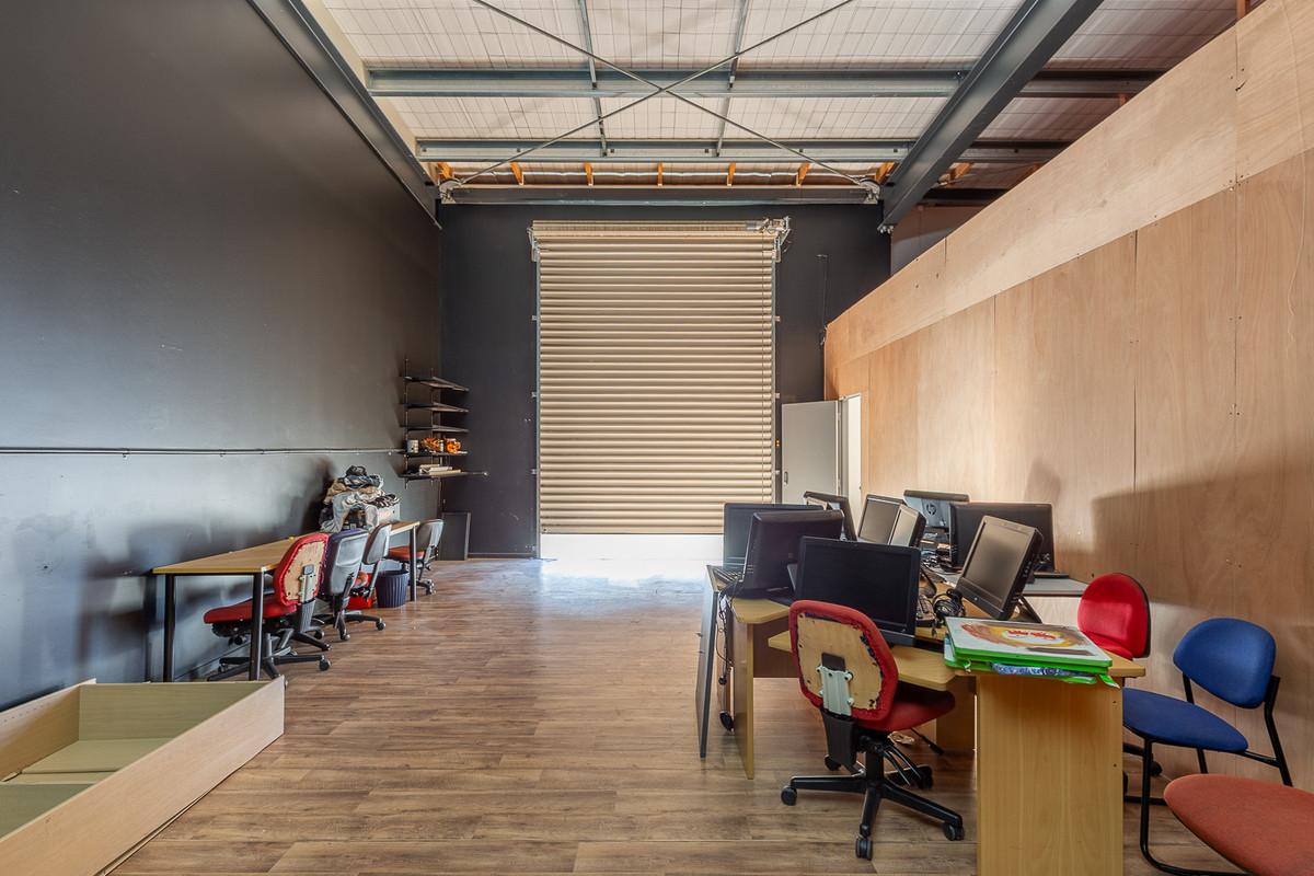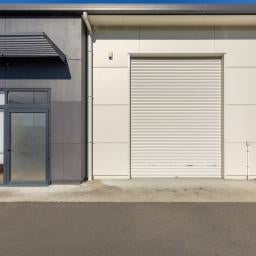 A high-clearance roller door provides efficient warehouse access, suited to storage, distribution, or light industrial operations.