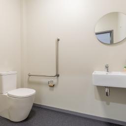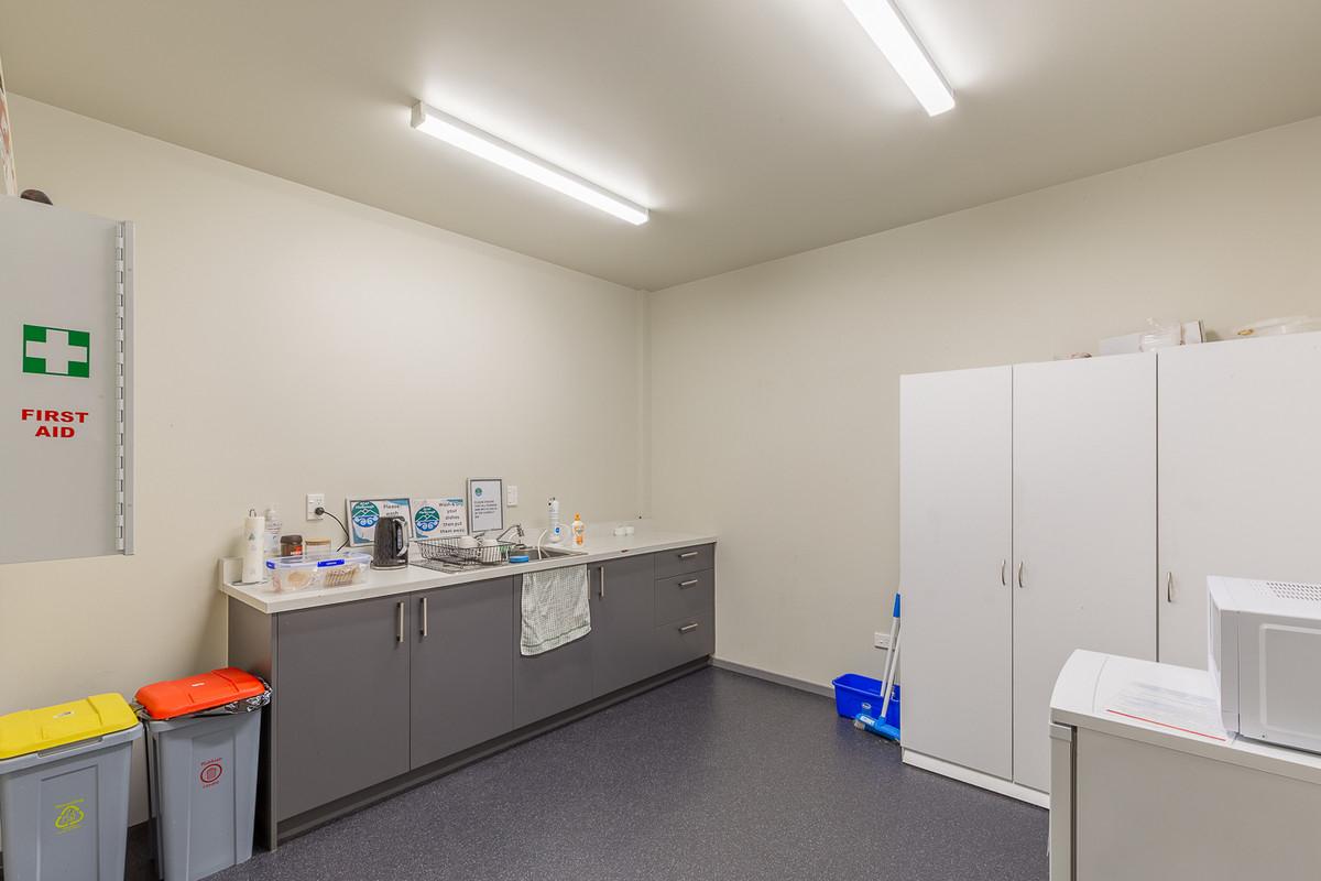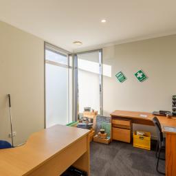 It includes three well-presented offices, a tidy kitchenette and staff room, and modern bathroom amenities.