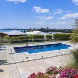 The master bedroom has en-suite and walk in wardrobe, ranch sliders to the gardens and views over the pool to the harbour beyond. Three further double bedrooms and family bathroom means there’s plenty of room for family or guests. The discerning buyer will appreciate the quality of this well-appointed home with many desirable and value adding features including: tiled showers, ducted air con and heatpump, double track curtains and blinds on all windows, fly screens and doors, water filter and security alarm. All beautifully presented and well maintained.